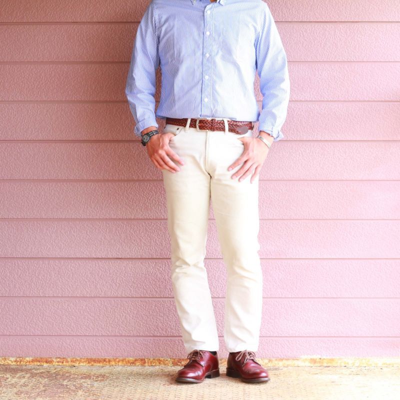 細身のベルト幅、小ぶりなバックルが生む上品さが