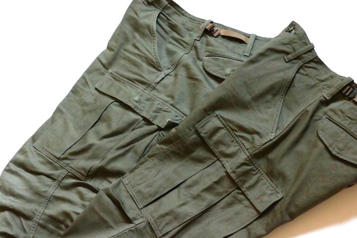 再入荷したベイカーパンツと同じスレン染めのFOB FACTORYのカーゴパンツの経年変化は上の画像。