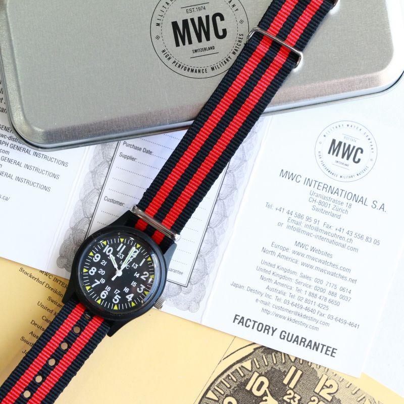 | MWC(Military Watch Company International S.A.)は、1974年、ウォッチディーラーとして活躍していたヴォルフガング・オブリグハイメル氏が、当時のローデシア(現ジンバブエ)軍用の時計製作依頼を受けたのを機に、スイスのチューリッヒにて設立。
