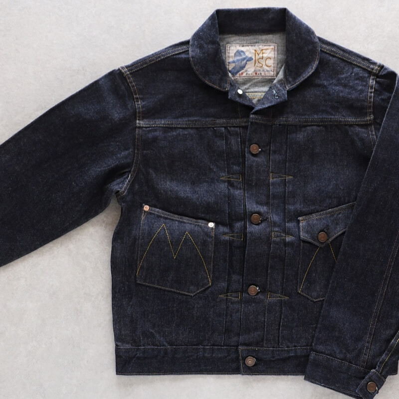 巻き縫いを多用して作られた拘りの詰まったデニムジャケットです。 |