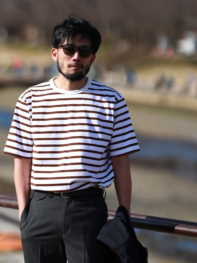 | | | | | | モデルはサイズ2(M)で丁度良いサイズ感です。 しっかりとした生地感でありながら、表面は滑らかでジャケットなども着やすいタフなボーダーTシャツです。 猫のワッペンも可愛いです。 | | | | | |